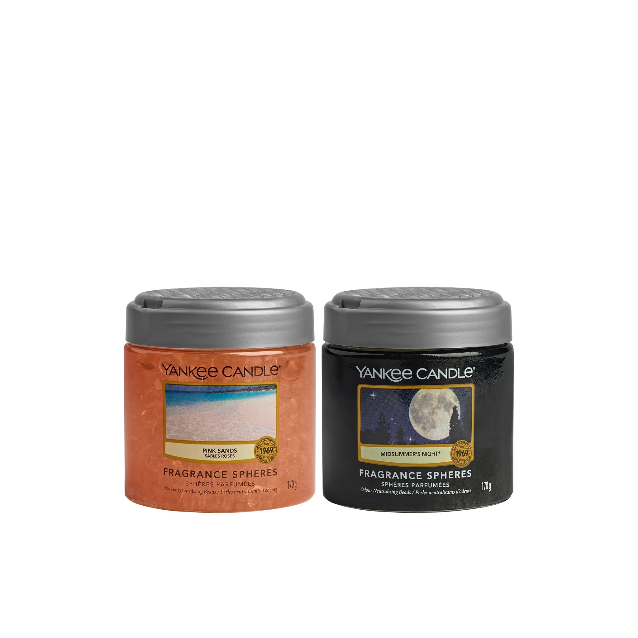 Yankee Candle Midsummers Night Fragrance Spheres Air Freshener :- Yankee Candle Midsummers Night Fragrance Spheres Air Freshener - Neutralise odours and freshen small spaces for up to 30 days with Yankee Candle Fragrance Spheres. These convenient beads provide blissful aroma in gym lockers, wardrobes, bathrooms, and other places where stagnant air lurks. You'll know it's time to replace the jar once all the beads have shrunk. Box Contains: 1 x Fragrance Spheres pot Top Note - Citrus, Herbaceous, Woody, Bergamot, LimeHeart note - Lavender, Pine Floral SageBase note - Cedarwood, Vetiver, Juniper Berry, Clary Sage, Moss Yankee Candle Pink Sands Fragrance Spheres Air Freshener:- Yankee Candle Pink Sands Fragrance Spheres Air Freshener - Neutralise odours and freshen small spaces for up to 30 days with Yankee Candle Fragrance Spheres. These convenient beads provide blissful aroma in gym lockers, wardrobes, bathrooms, and other places where stagnant air lurks. You'll know it's time to replace the jar once all the beads have shrunk. Box Contains: 1 x Fragrance Spheres pot Top Note - Citrus, Melon, BerryHeart note - OsmanthusBase note - Spicy Vanilla, Musk, Woody Notes